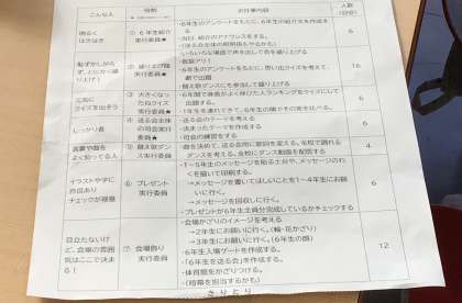 今日は曲をどうするか、掲示物をどうするか、どんな企画を考えるかなど、アイデアを出し合う時間でした。学級を解体して、それぞれ係を決め、どうやって6年生に喜んでもらうか、思い出にしたってもらうかを考えていました。
