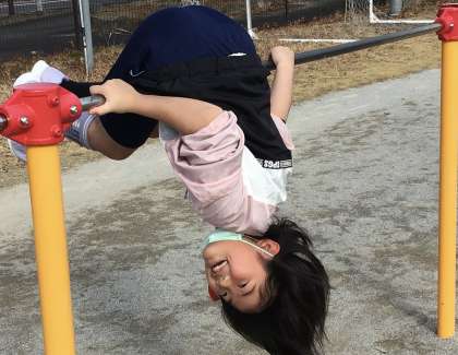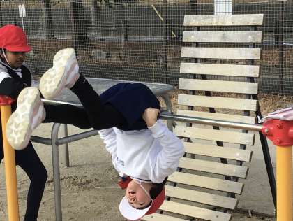 2年生、鉄棒で連続逆上がりを見せてくれました。