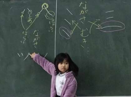 2組さんは「前に出て説明していいですか?」と言って、先生が黒板に書いた字のどの部分に対する意見なのかをみんなにわかるように説明する姿が数多く見られました。