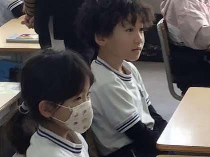 2年1組さんではジョニ先生と英語の勉強をしていました。