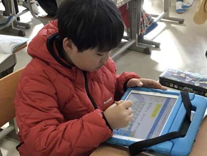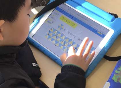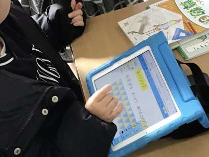 3年1組さんではタブレットを使って、図形の問題にチャレンジしていました。