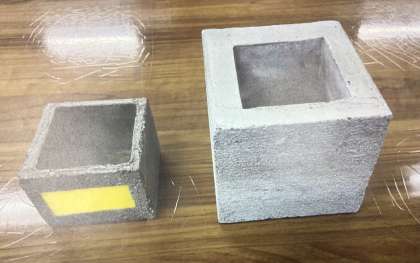 セメントを使った入れ物は四角と丸を自分で選びます。型枠作りからやっていきます。