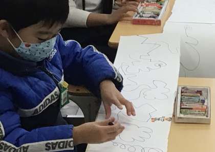 前回勉強したいろいろな線を使って、絵を描いていました。