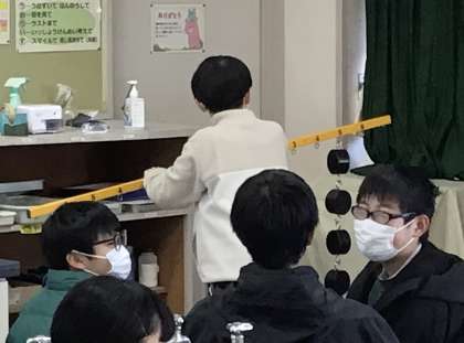 6年2組さんが理科室で実験をしていました。