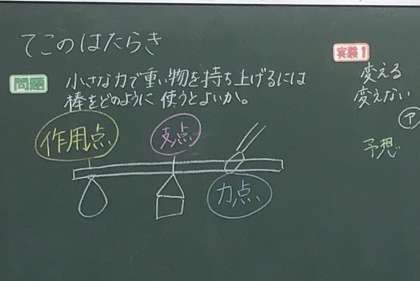 6年生は今、てこの勉強をしています。大きなてこが2つ、理科室には準備されていました。実際に棒を押す位置を変えてみて、手に伝わる重さの感覚を掴んでいました。てこの力を応用したもの、世の中にはいっぱいあるので探してみてください。