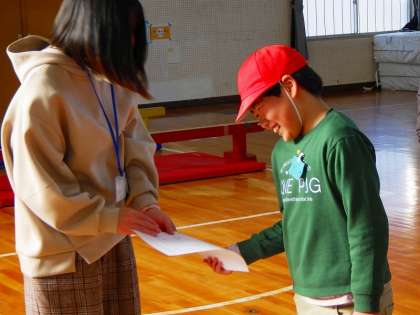 昨日の5時間目は6組の子たちが体育館で先生たちを招いて、一緒に楽しく勉強をしました。
