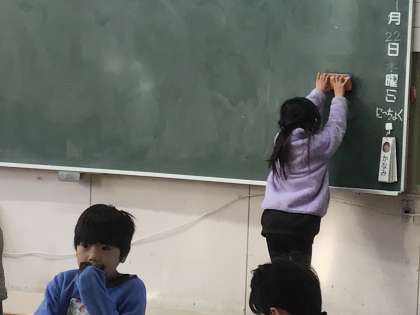 友達とお話したり、本を読んだり、黒板を綺麗にしてくれている子もいました。