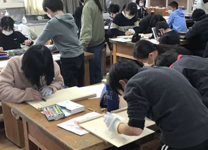 5年1組さんが3・4時間目は図工室で授業を行なっていました。