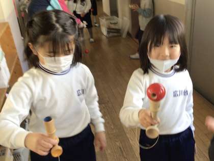 5時間目、1年生のクラスでは生活科で昔の遊びをしていました。