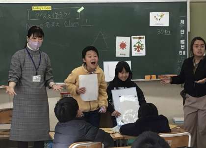 時間の許す限り、前に出てクイズをみんなに出していました。