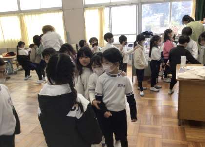 1年1組さんでは、以前もやっていたジャンケン汽車ポッポをしていました。