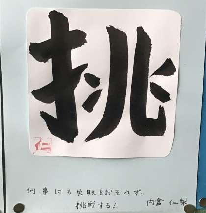 2階から3階の渡りに1組さん、2組さんの今年の抱負が掲示されています。