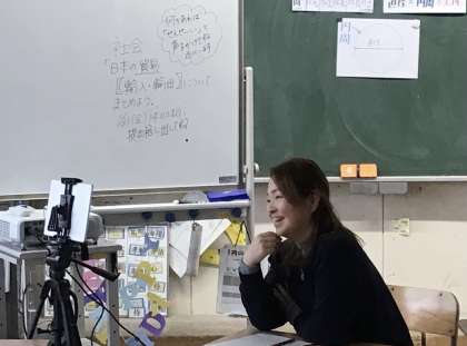 5年1組さん、5時間目の時間に社会の授業でしょうか、オンラインで谷中先生と授業をしていました。