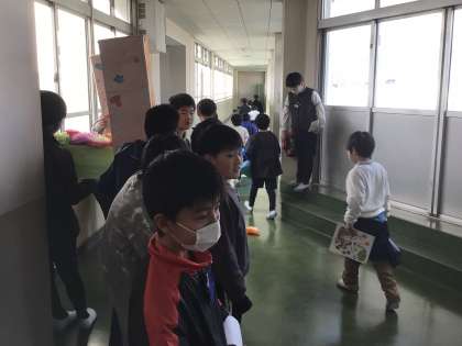 音楽室へGO 公開日 2025/02/04 更新日 2025/02/04 校長室から 1年生の子が帰りの準備を済ませた後、音楽の授業のため、音楽室へ向かっていました。 2列で整然と進んでいます。 授業が始まっているので誰も喋らずに歩いています。 3階に上がり、送る会の準備中の5年生に温かく見守られながら進んで行きました。
