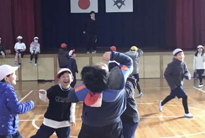 3年2組さん、体育の授業で「もうじゅう狩りに行こうよ」をしていました。
