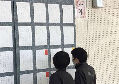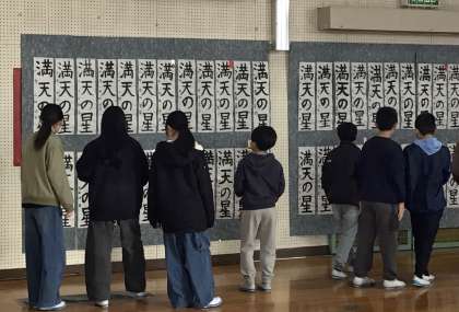 来年自分たちが書くことになるであろう6年生の習字のところにいっぱい集まっていました。