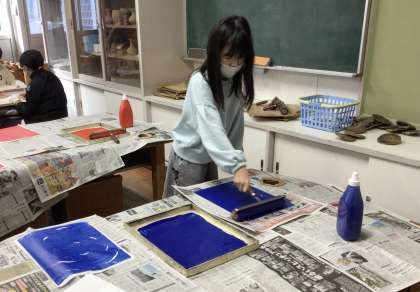 図工室では5年2組さんが版画に挑戦中でした。