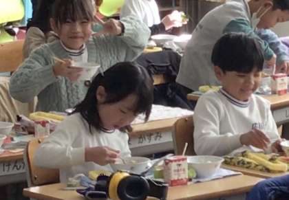 納豆、味噌汁、ご飯なので純和風の給食の中、写真のようなお菓子が付いていました。
