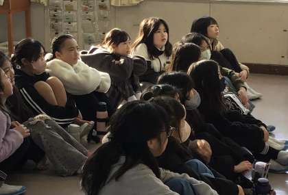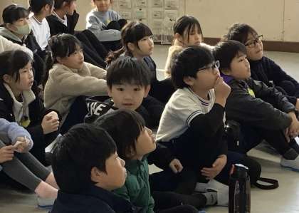 4年生の読み聞かせの様子です。 整然と並んで、お話を聞いていました。
