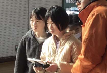 4年生 ドローンを飛ばしています