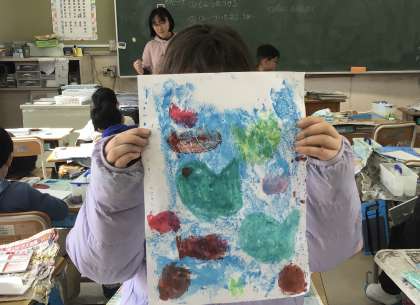 3年2組さん、図工の授業でスチレンはんがの作成中でした。