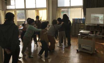 特別支援学級さん、5年生の子が作ってくれた動画を見ながら、踊ったり、じゃんけんをしたりして練習をしていました。