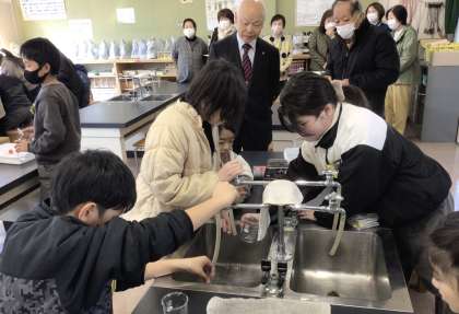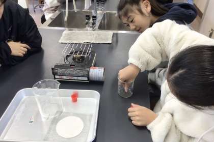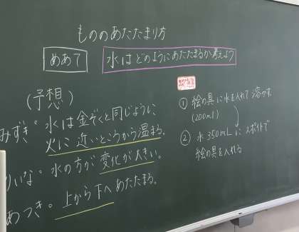 4年1組さん、理科の実験で水の温まり方を調べました。
