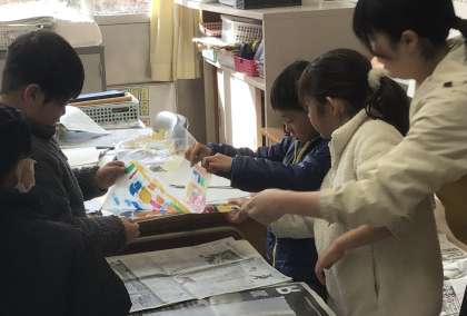 友達の作品でもうまくいってほしいのでしょう、慎重に持ち上げている様子が素敵でした。
