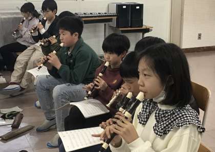 5年生 音楽の授業です 公開日 2025/03/03 更新日 2025/03/03 校長室から 5年2組さん、音楽の授業でリコーダーの練習をしていました。 今日は「木星(ジュピター)」の練習中でした。 星先生が準備してくれたお手本に合わせて、みんなで吹いていました。 お上手でしたね。