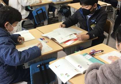 4年1組さんでは国語の授業で「アンケートづくり」をグループで行なっていました。