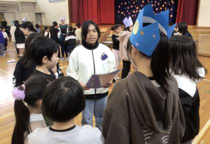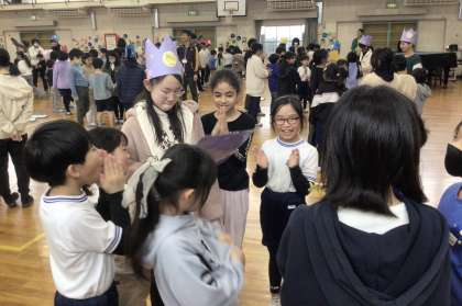 「みんな、ありがとうね。1年間、とっても楽しかったよ」と1年生から5年生の子に6年生の女の子が声をかけていました。