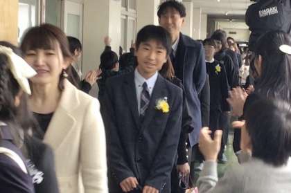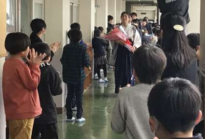 3階から6年生と保護者の方が一緒に間を通っていかれました。