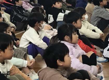 上の写真は修了式で代表児童の話を聴いている時の様子です。