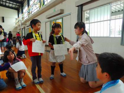 トロロ班で自己紹介をしたり、一緒に異学年の子たちとゲームをしたりしました。