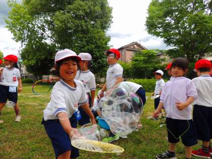 お家からウチワだったり、ハンガーだったり、いろんなものを持ってきてもらって、みんなで楽しみました。