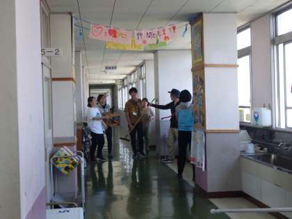 複数の先生たちで警察が来てくれるまでの不審者への対応訓練を行いました。不審者に直接対応しない先生たちは子どもたちの安全をいかに確保するか、連絡を取り合いながら訓練を行いました。