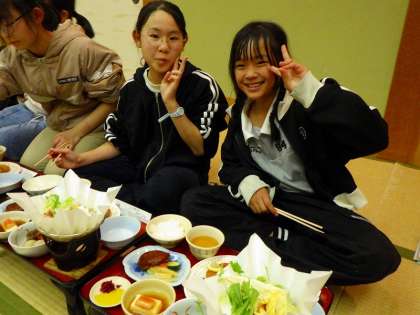 去年、宿は武蔵野さんに泊まりました。とても綺麗な宿で貸し切りで使わせてもらえました。大広間で全員でご飯を食べられたのもよかったですね。コロナ禍では部屋ごとに前を向いて無言で食べていたそうです。ワイワイガヤガヤした中で、みんなが楽しく食べられるようになって、本当によかったなと思います。