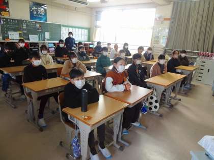 1月初めの集会は、インフルエンザの流行の心配もあるので、教室と校長室をつないでオンラインで行いました。