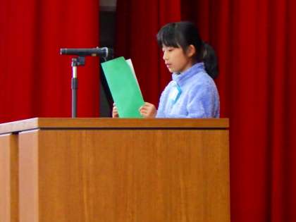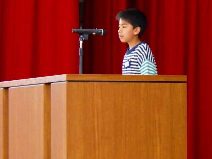 そして修了式。 代表でお話をした3年生、5年生。 2人ともたいへん立派なお話でした。