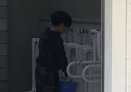 今日の6年生の入学式準備の仕事の中で、最もたいへんだった仕事は写真の子の仕事かもしれません。そうトイレ掃除です。