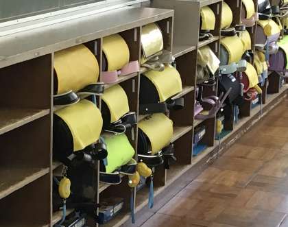 1年生の教室では水筒の片付け方、ランドセル等のロッカーへのしまい方など、先生に一つ一つ教えてもらっていました。