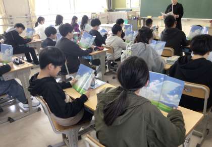 写真はその後の「教科書を立てて」読んでいる様子です。