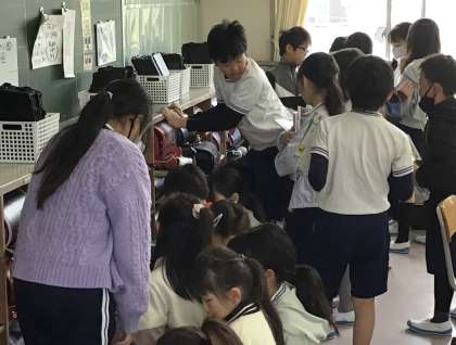 5年2組さんの教室では、学校に置いていく教科書を共有のロッカーに入れる活動をしていました。