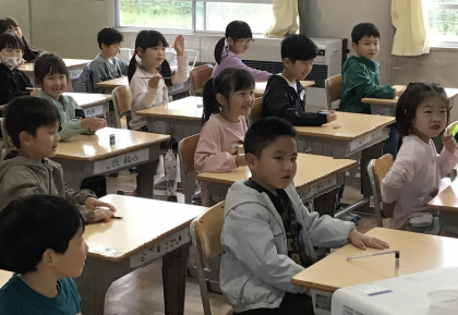1年生の教室では「えんぴつ」の持ち方を教えてもらっていました。