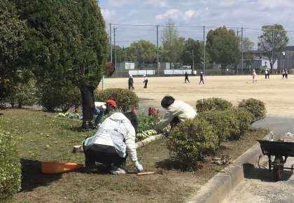 掃除をしてくださったり、花壇の整備をしてくださったり、給食のコンテナの準備・片付けをしてくださったり、さまざまな仕事をしてくださっています。
