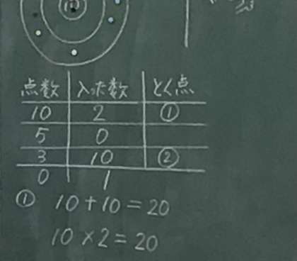 3年2組さん、算数の授業で「的に当たった得点を数えよう」という勉強をしていました。