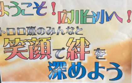 6年1組さんの教室に貼られている「1年生を迎える会」のスローガンです。