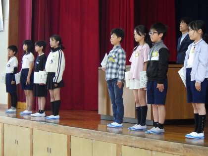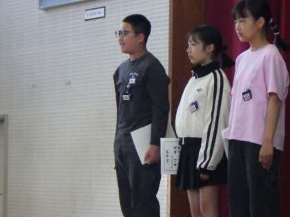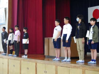 どの子も全校の前で堂々と話しており、たいへん立派でした。