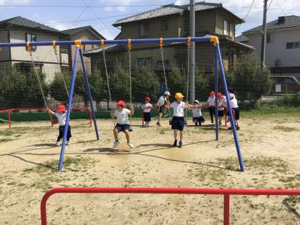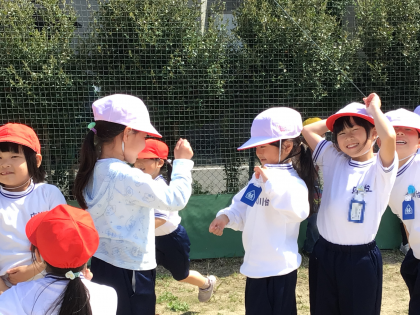 一番上の写真は1年生の子たちが平均台でじゃんけん遊びをしている様子です。