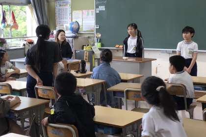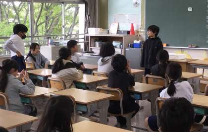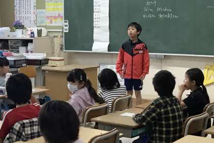 3年生、5年生のクラスでの朝のスピーチの様子です。